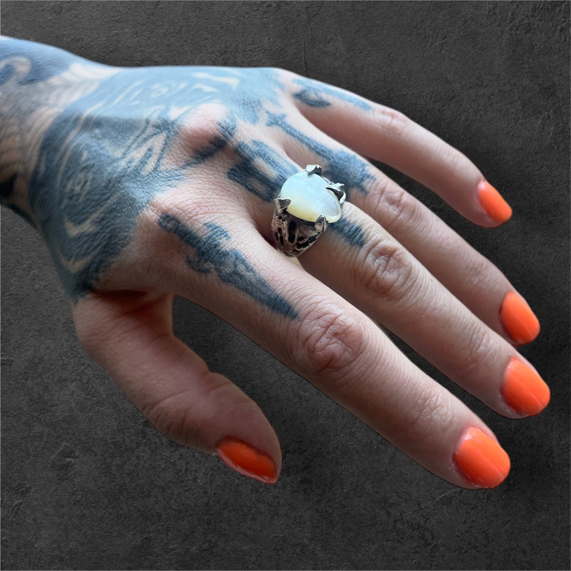 Experience the magical allure of our Mother of Pearl Bewitched Ring. This one-of-a-kind piece features a custom stone of lustrous mother pearl. Simply provide your ring size at checkout and let the enchantment begin.